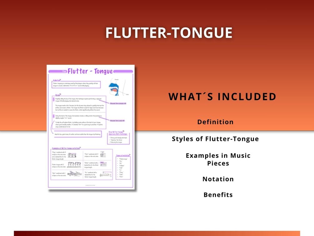 Learn what flutter-tongue is, the different styles you can use, and how it’s written in music. This section includes real examples from pieces, notation guides, and the key benefits of practicing this exciting technique.